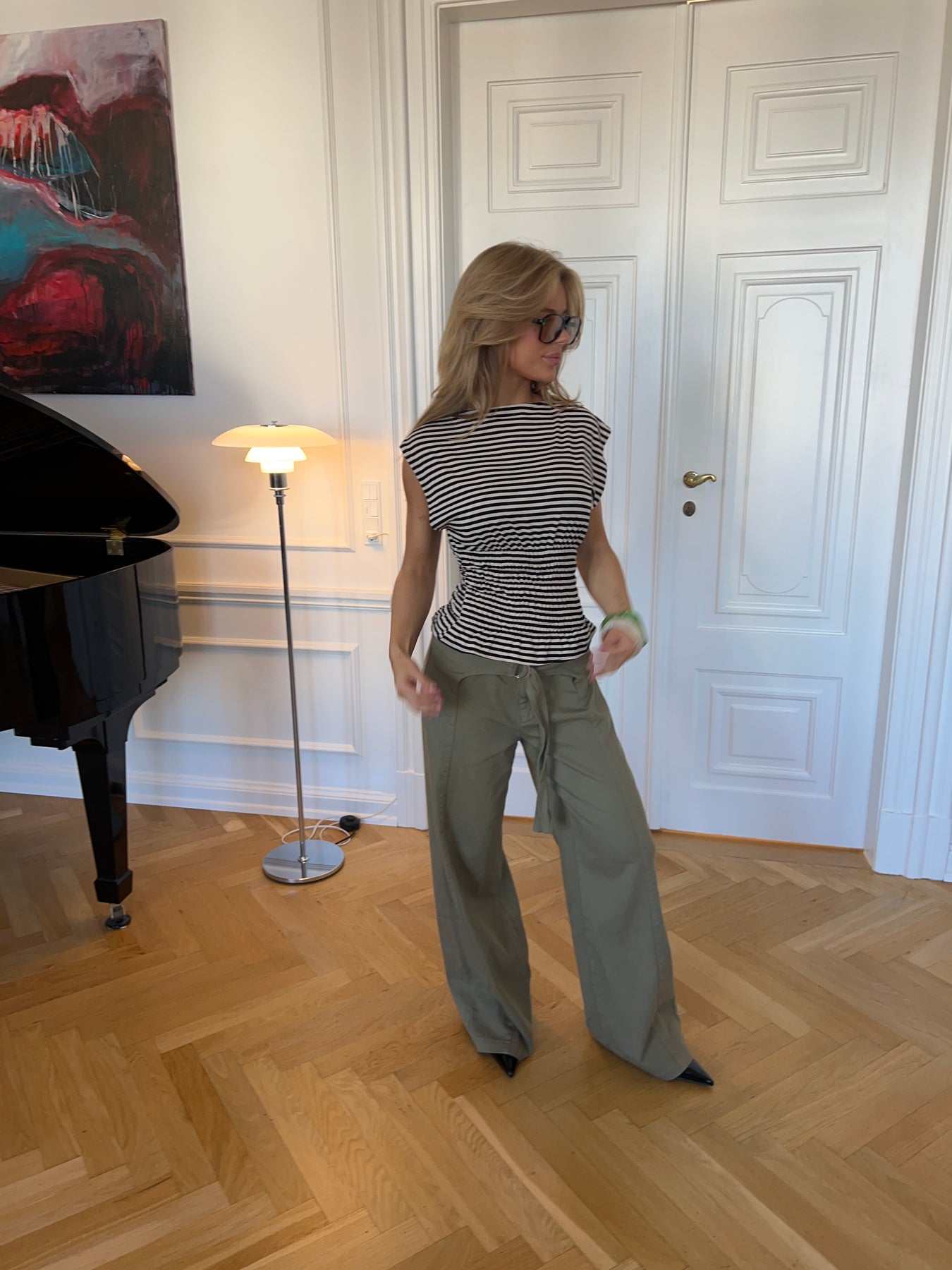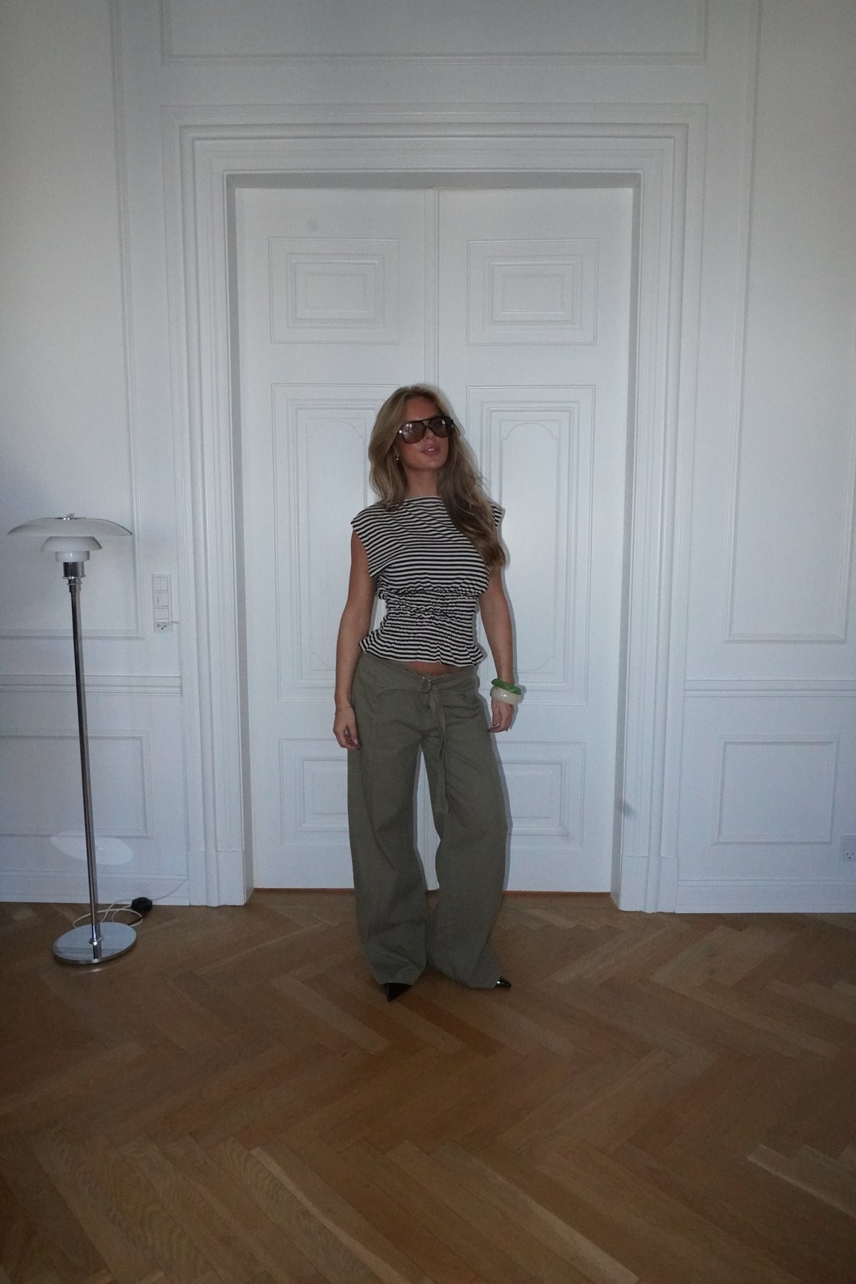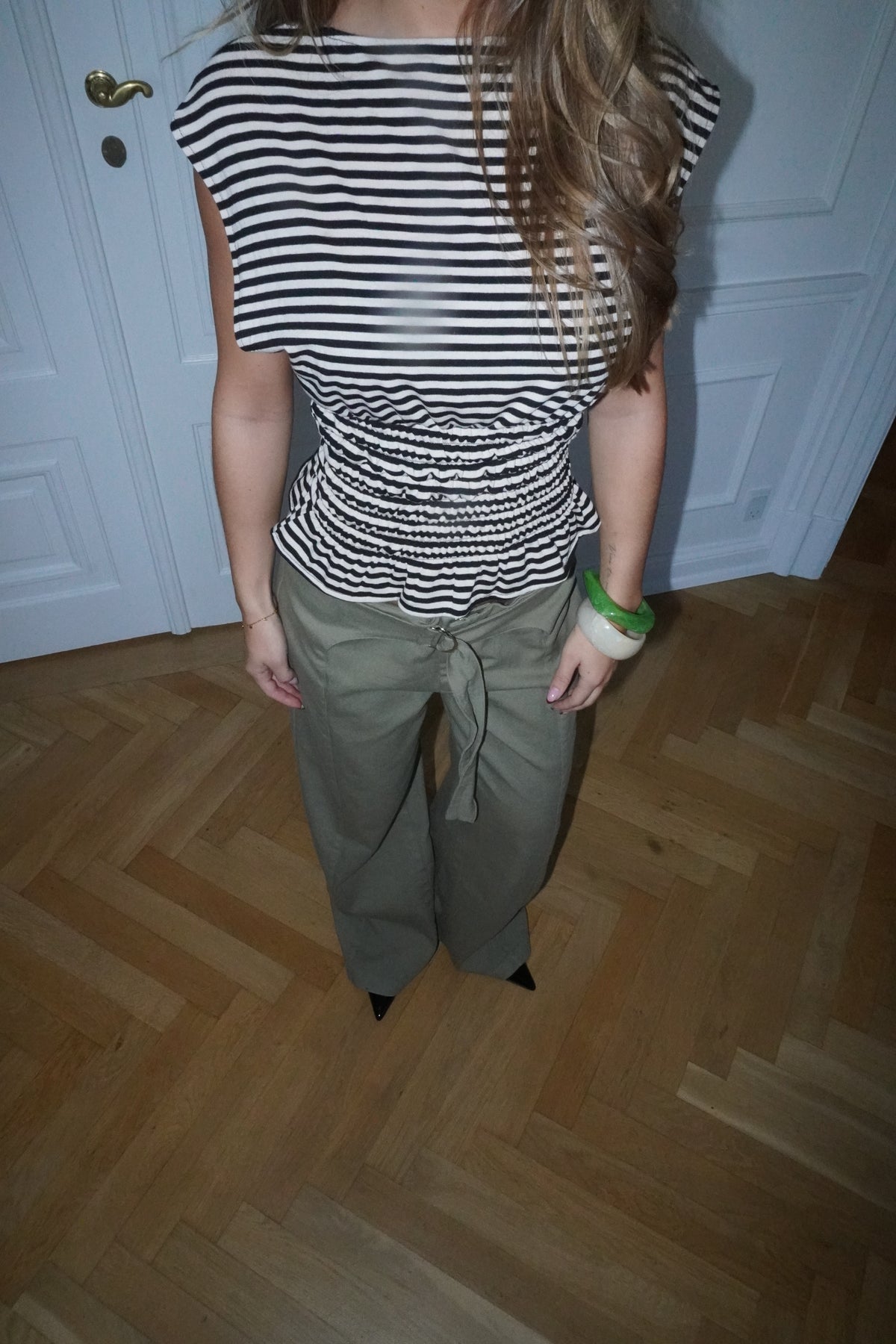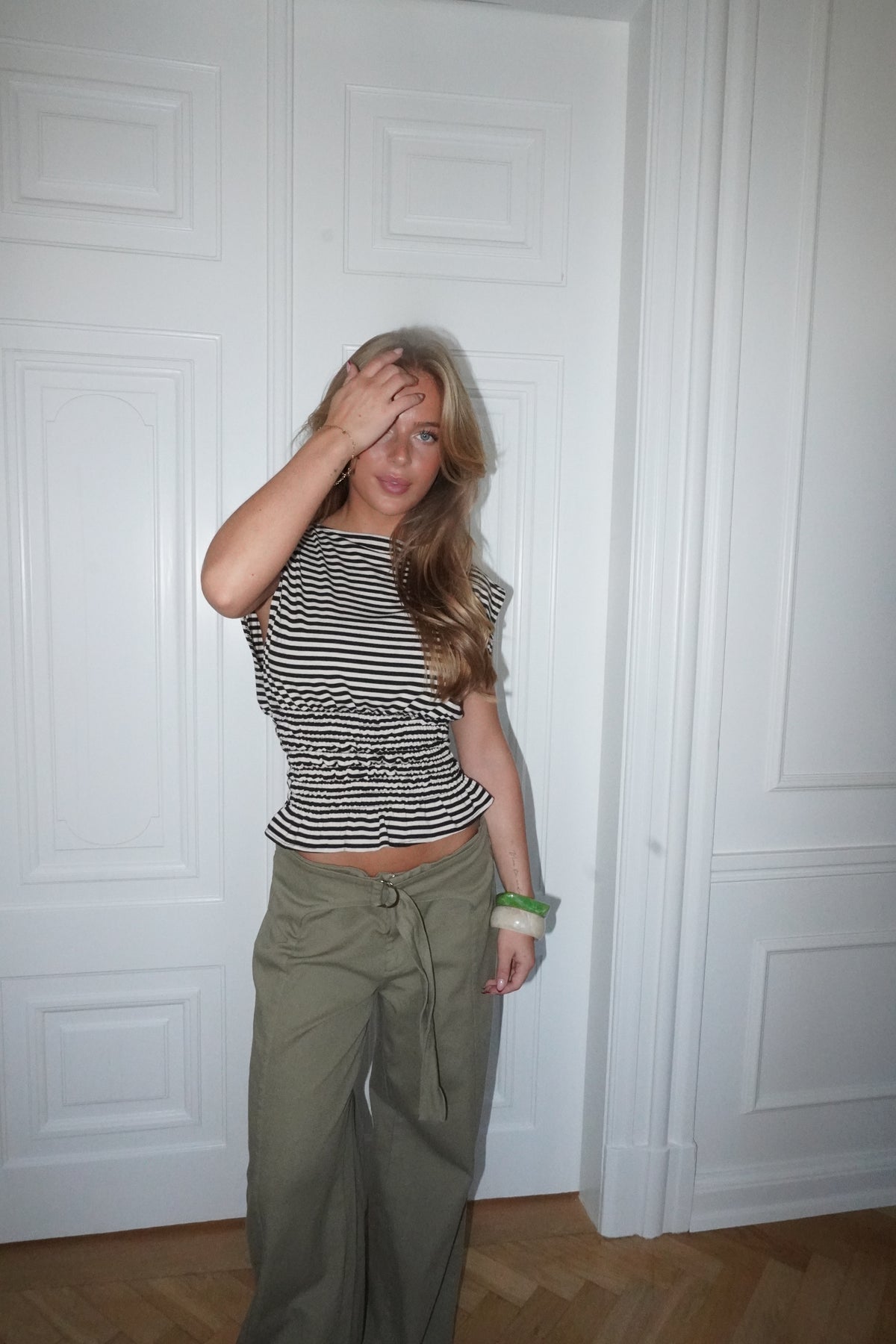 Bianca toppen i brun og hvid kombinerer et klassisk stribet design med feminine detaljer. Toppen har en lige halsudskæring og korte, skrå ærmer, der giver et moderne og afslappet udtryk. Smock-detaljen i taljen fremhæver figuren på en elegant måde, mens den let bølgede bund skaber et flot og flatterende fald. En alsidig top, der passer perfekt til både hverdag og pænere anledninger.
