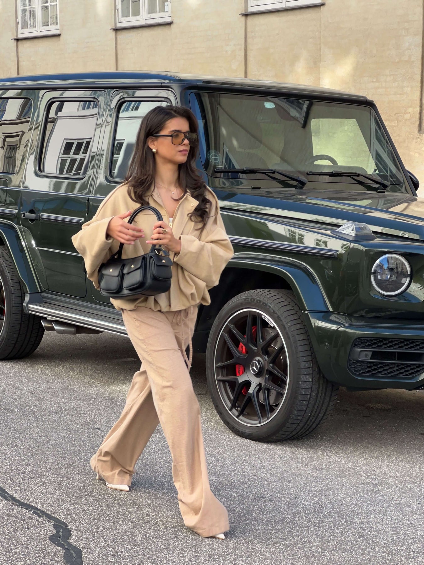 Jakken har sidelommer, lynlåslukning foran og en krave i nakken, som giver et eksklusivt udtryk. Med sit naturlige oversized fit er den nem at style med alt lige fra en strik til en simpel tee. En jakke du kan bruge igen og igen, uanset sæson.