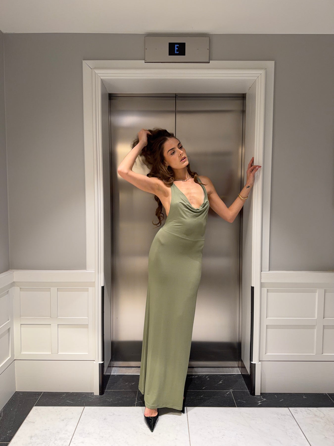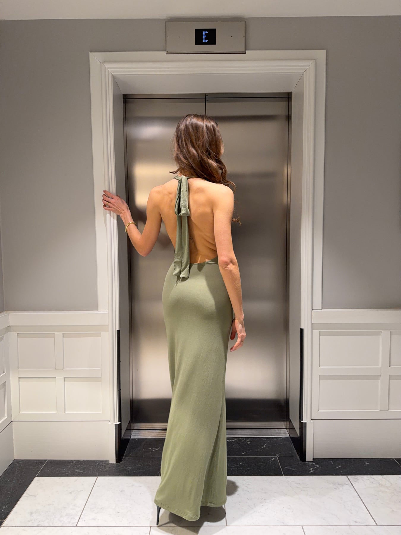 Gela åben ryg maxi kjole - Sage