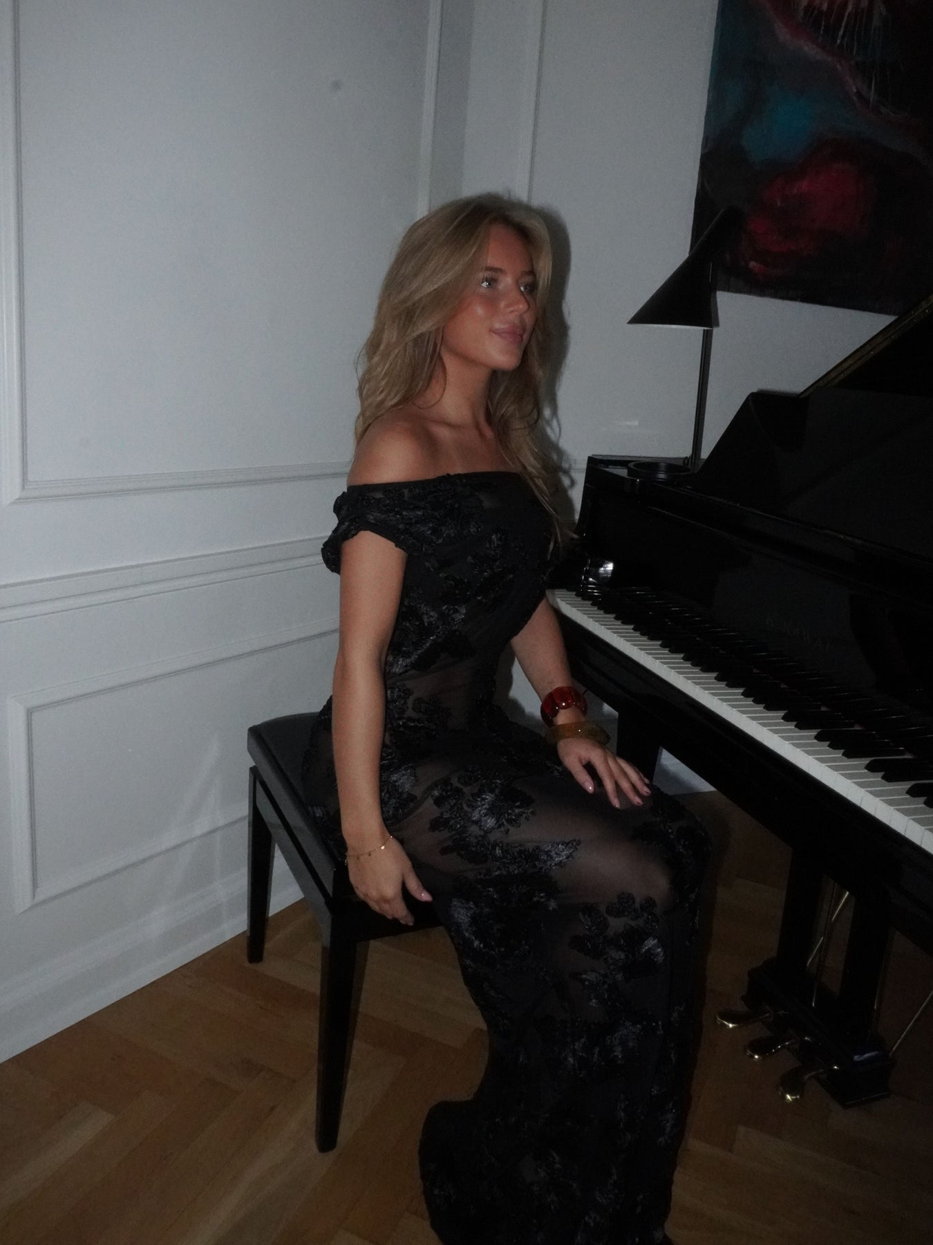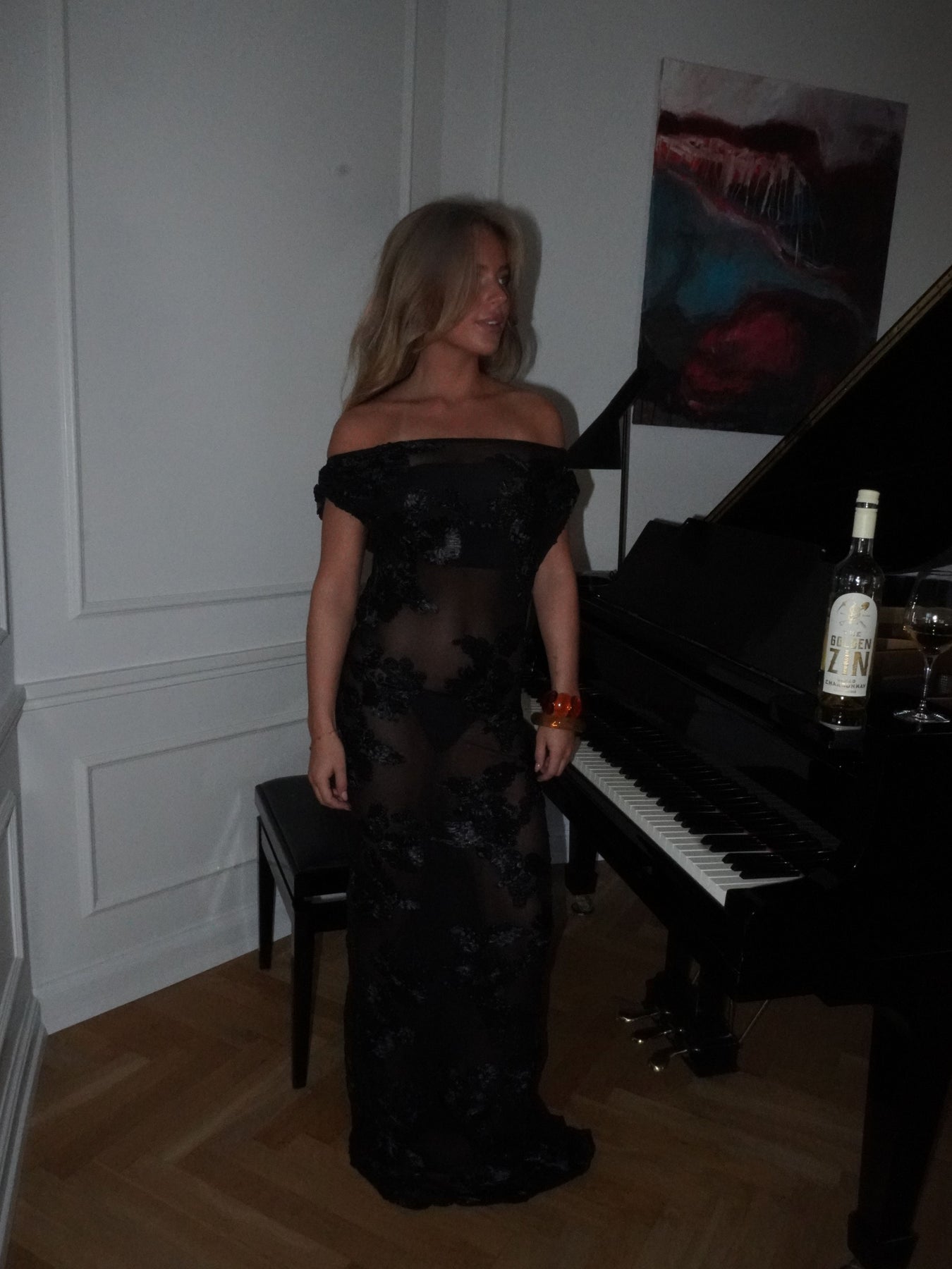 Vores smukke Kivo maxi kjole i mesh kombinerer et elegant look med fine håndlavede blomsterbroderier, som giver kjolen et romantisk touch. Kjolen kan let styles off shoulder eller som en one shoulder, hvilket gør den nem at tilpasse enhver lejlighed. Kjolen har et transparent look og kan styles både med og uden underskjole.