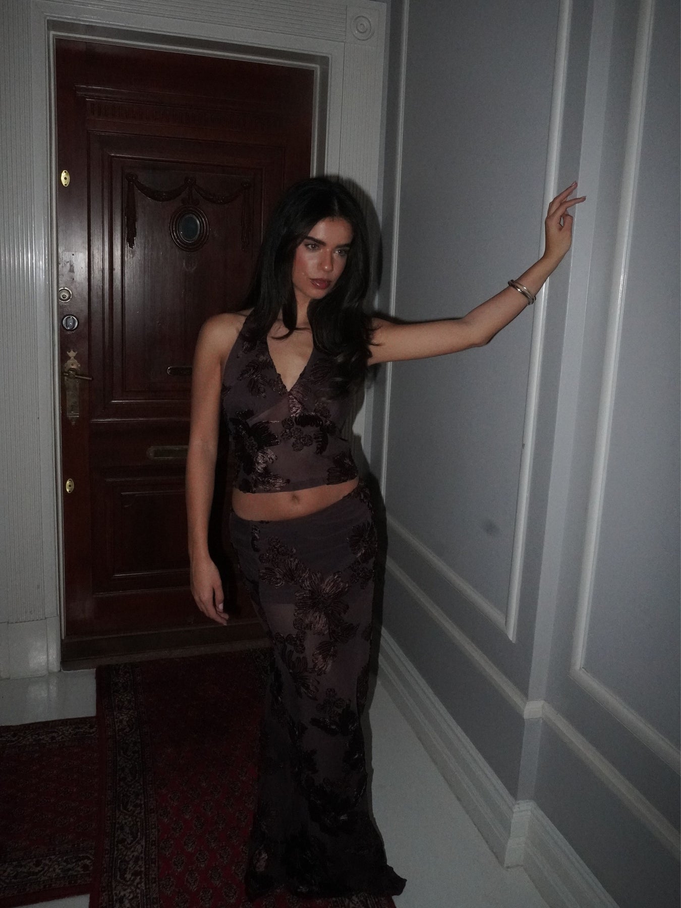 Vores smukke Kivo maxi nederdel i mesh kombinerer et elegant look med fine håndlavede blomsterbroderier, som giver sættet et romantisk touch. Nederdelen kan styles med vores Kivo mesh top eller andre overdele, hvilket gør den nem at tilpasse enhver lejlighed. Nederdelen har en linning i den øverste del, som fungerer som et underskørt.