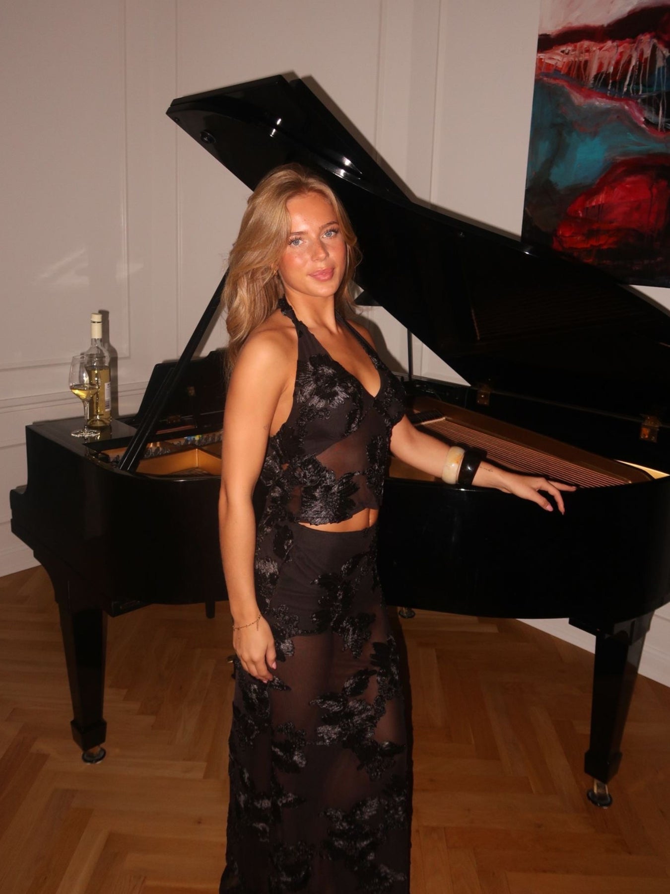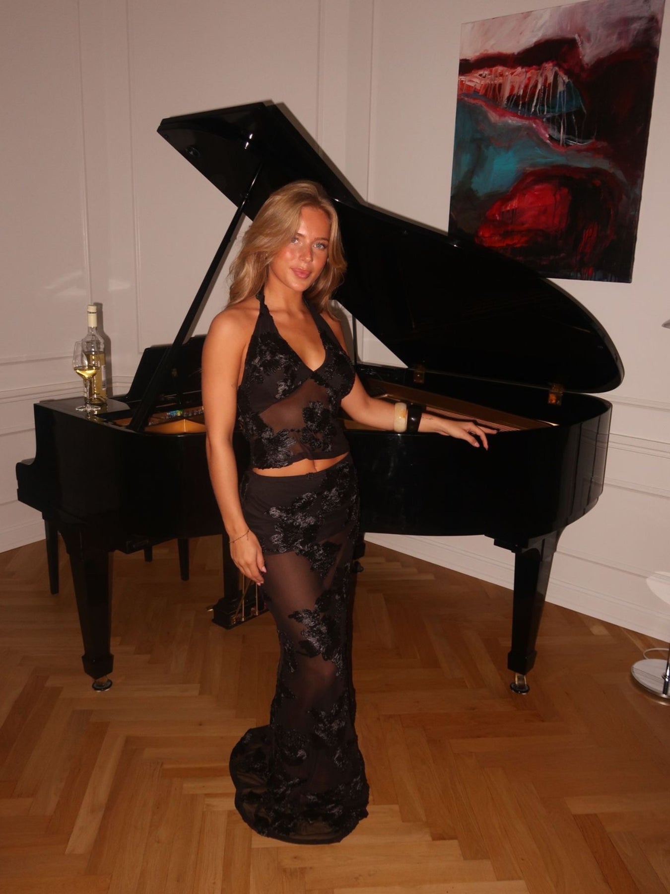 Vores smukke Kivo top i mesh kombinerer et elegant look med fine håndlavede blomsterbroderier, som giver sættet et romantisk touch. Toppen kan styles med vores Kivo maxi nederdel eller til par jeans/bukser, hvilket gør den nem at tilpasse enhver lejlighed. Toppen kan bindes bagpå og giver en flot figursyet talje.