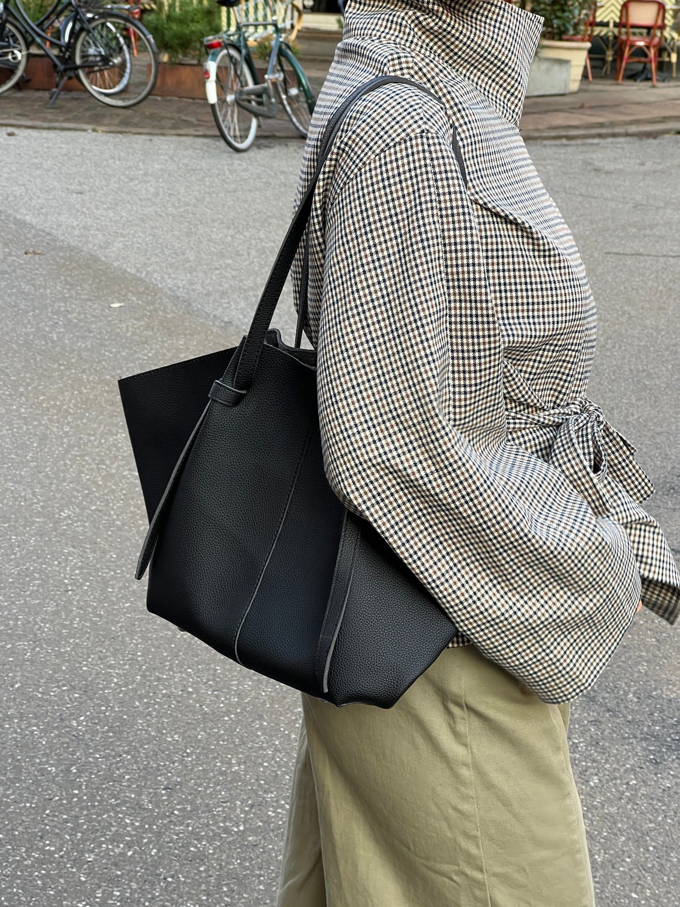 Vores Lucia skuldertaske er en rummelig og tidløs taske med et enkelt og gennemført design. Tasken er produceret i strukturpræget materiale med et blødt ruskindsligendende foring indvendigt. Tasken har lange skulderstropper, knudedetaljer og en fast bund, som sikre stabilitet og et stilrent look. Den perfekte taske til både arbejde og hverdag, som nemt kan presses både op og ned afhængigt af outfits.