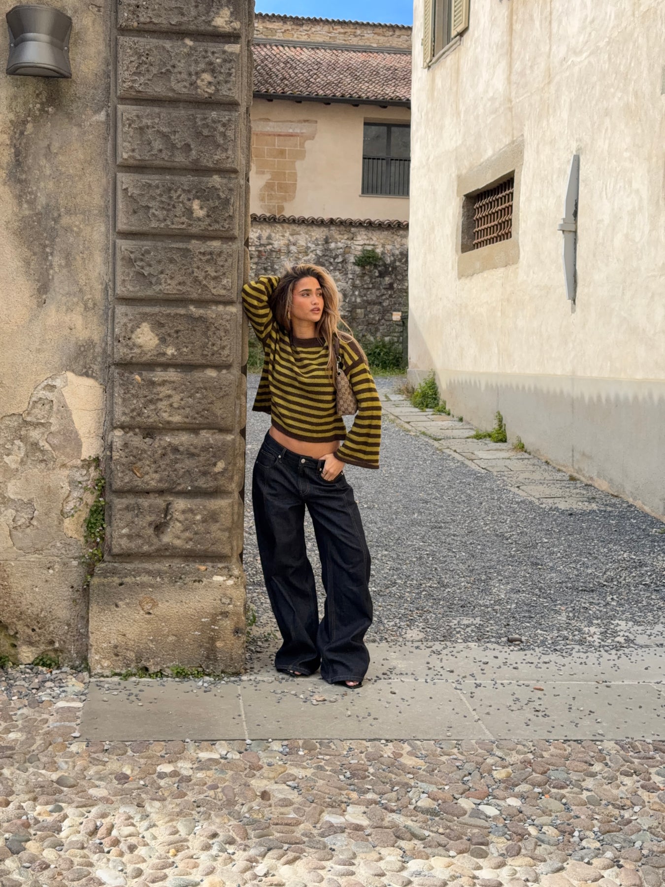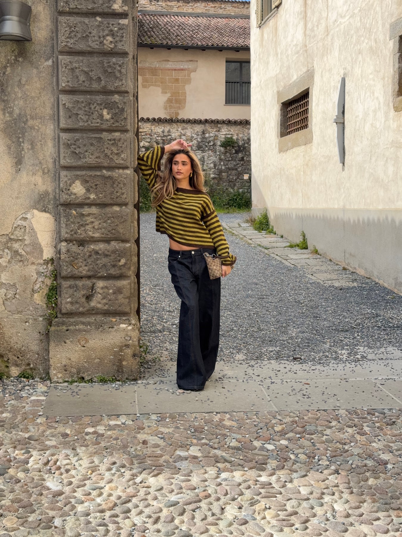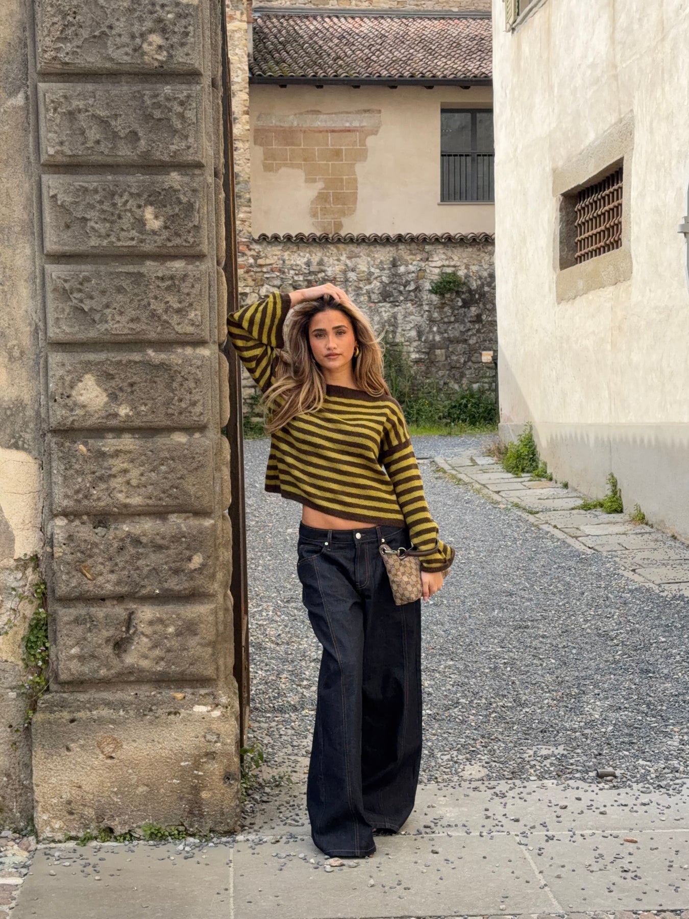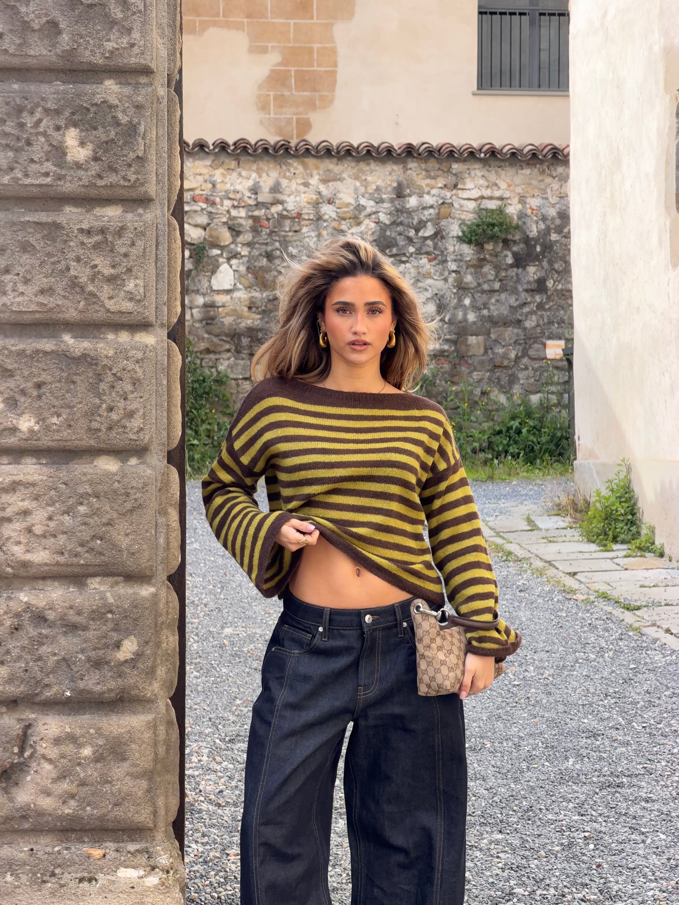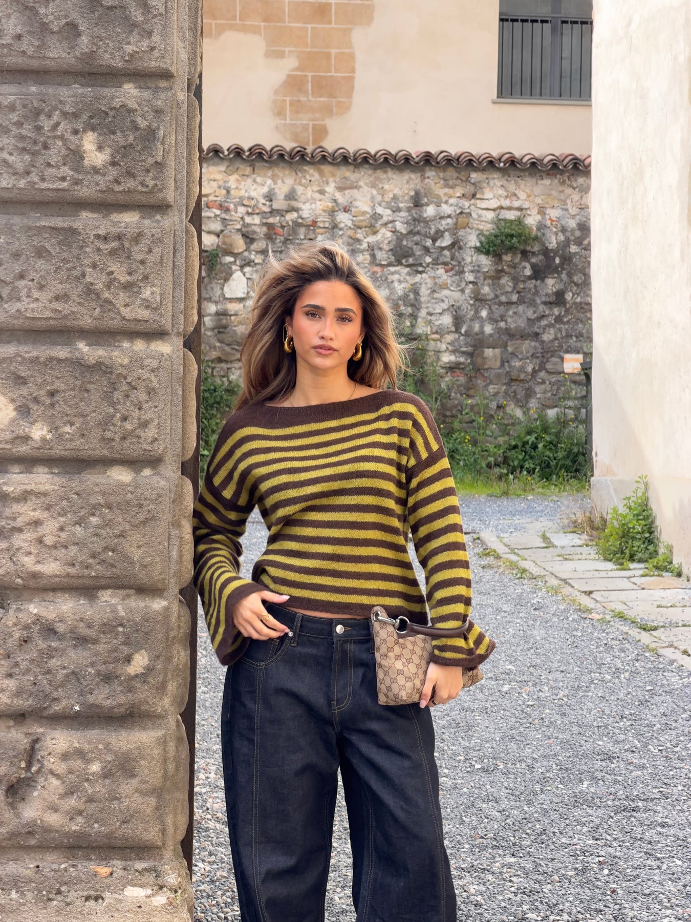 Vores Oline stribet boat neck striktrøje er en blød og moderne strik med et afslappet udtryk. Den har en klassisk boat neck-udskæring, der giver et elegant og feminint look, mens de brede ærmer og den let løse pasform skaber en komfortabel og afslappet silhuet. De vandrette striber i brun og grøn tilfører et stilfuldt og et karakterfuldt udtryk, som gør strikken nem at style til både jeans, bukser og nederdele. En behagelig og alsidig strik, perfekt til både hverdag og afslappede dage.