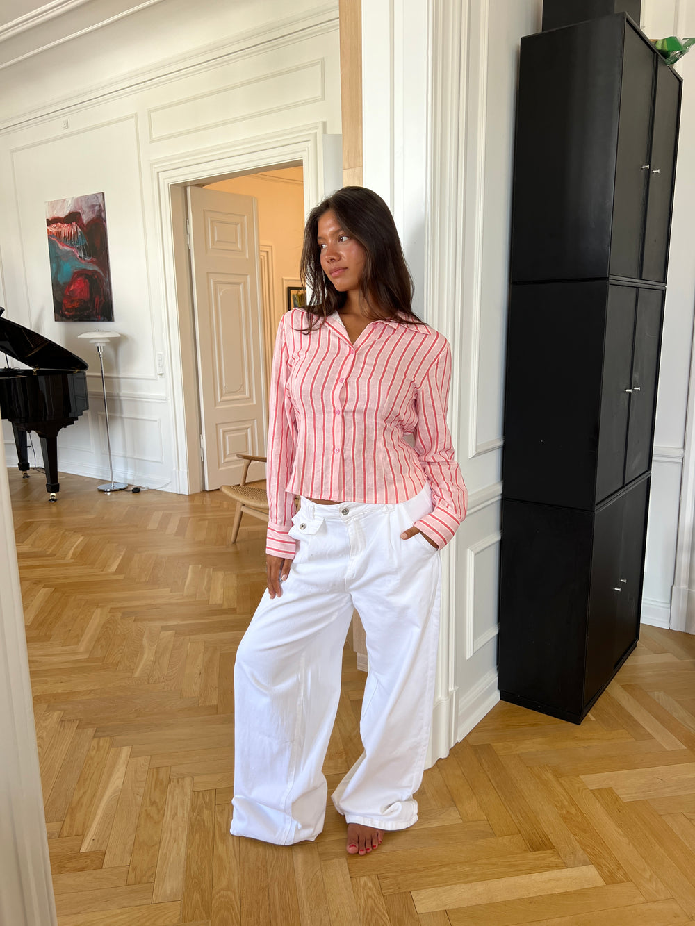 Esme baggy jeans er til dig, der elsker et afslappet og cool look. De kommer i en baggy pasform med unikke detaljer foran, læg i siderne og en dobbelt bæltestrop, der giver bukserne lidt ekstra kant. De har lynlås og knaplukning foran samt tilgående lommer, som gør dem både praktiske og stilfulde. Perfekte at style med en enkel top eller cropped tee for et let og elegant hverdagsoutfit.
